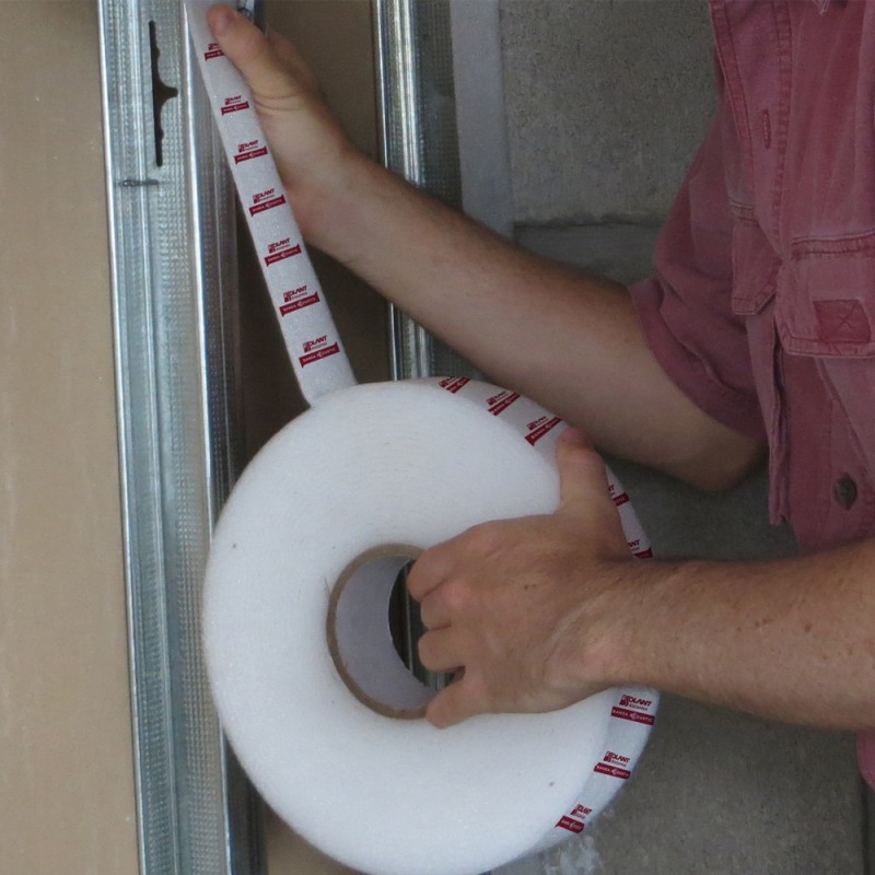 Usos: Desanclaje acústico para perfiles de construcción en seco y steel framing, adhesivada. En perfiles metálicos (montantes y soleras) de tabiques y cielorrasos.