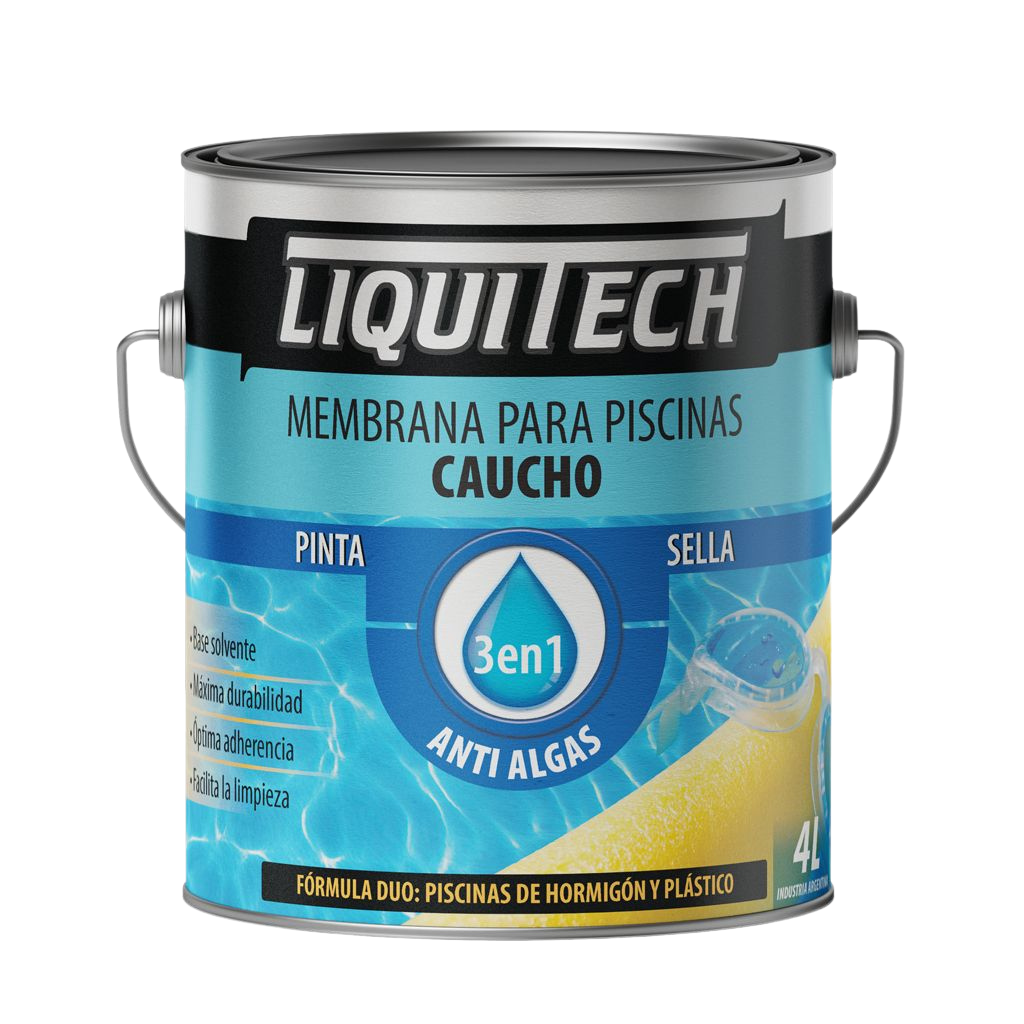 Piletas-PiscinasLiquitech Membrana para Piscinas-Caucho es una pintura formulada a base de caucho acrílico y pigmentos seleccionados para lograr una película de gran resistencia al agua y a las sustancias químicas.